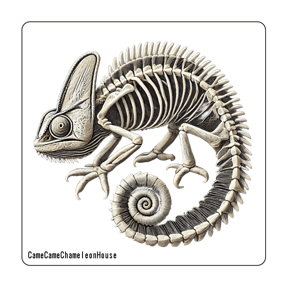 表面には、リアルな カメレオンの骨格標本 デザインを施し、インテリアとしても存在感のあるアイテムです。